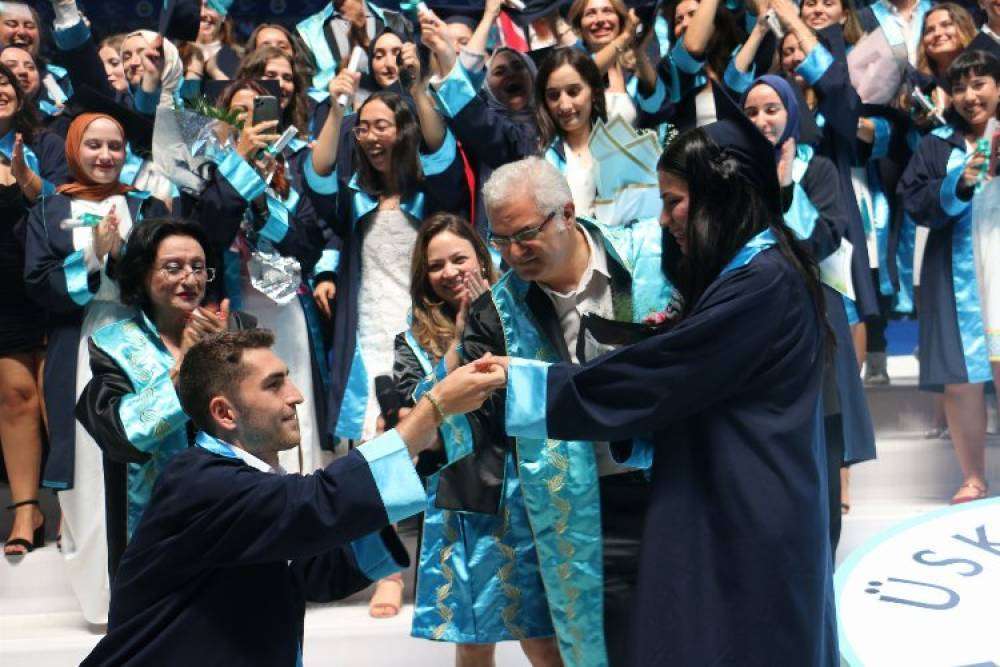 Üsküdar Üniversitesi İnsan ve Toplum Bilimleri Fakültesi Tarih Bölümü Dr. Öğr. Üyesi stratejist Kazım Dalkıran koordinatörlüğünde ‘Bayrak Flama Teslim’ töreninin ardından mezunlar hep birlikte Üsküdar Üniversitesi Tıp Fakültesi Dekanı Prof. Dr. Haydar Sur önderliğinde mezuniyet andını okudu. Sonrasında sahneye inen mezunlar kep attı. Heyecanlı ve coşkulu anların yaşandığı mezuniyet töreni DJ performansı ile sona erdi.