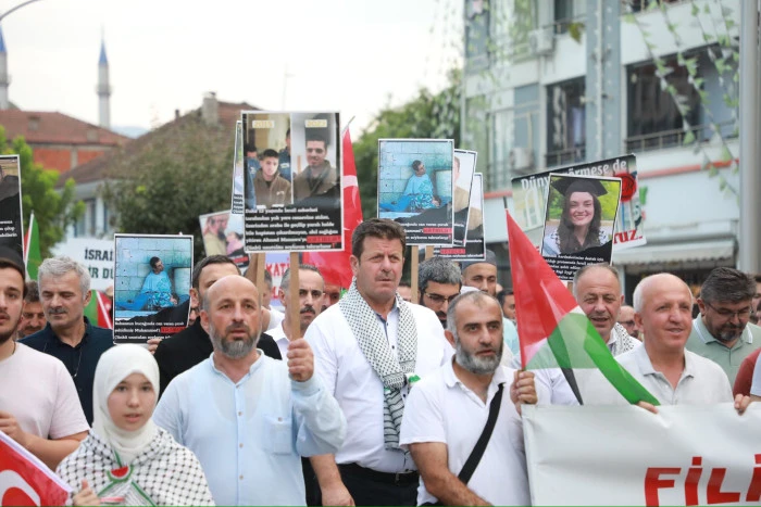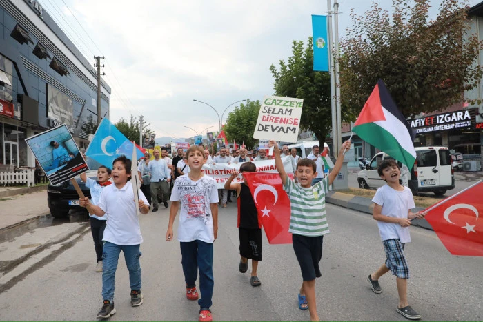 Recep Tayyip Erdoğan Gençlik ve Spor Merkezi önünde başlayan yürüyüşe çok sayıda vatandaş katıldı. Akyazı çarşı merkezine kadar devam eden yürüyüş boyunca katılımcılar, Filistin ve Doğu Türkistan halkına desteklerini ifade eden pankart ve dövizler taşıdı.