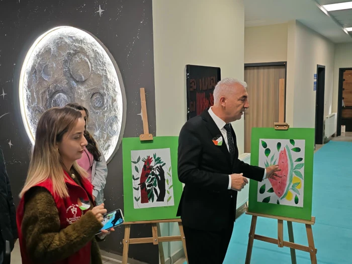 Akyazı Gençlik Merkezi ve Atatürk Ortaokulu iş birliğiyle düzenlenen "Filistin" temalı resim sergisinde, öğrencilerin anlam dolu eserleri farkındalık için sergilendi.