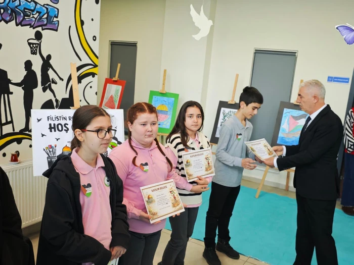 Akyazı Gençlik Merkezi ve Atatürk Ortaokulu iş birliğiyle düzenlenen "Filistin" temalı resim sergisi, gençlerin sanat yoluyla gösterdiği büyük bir dayanışma örneğine sahne oldu. “Fırçalar Konuştu, Vicdanlar Buluştu” temasıyla kapılarını açan sergi, öğrencilerin duygu ve farkındalık dolu eserlerini sanatseverlerle buluşturdu.