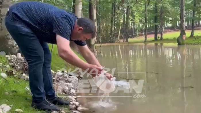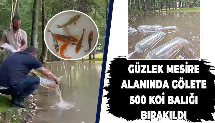 Güzlek mahallesi’ndeki mesire alanında oluşan gölete 500 adet koi balığı bırakıldı.