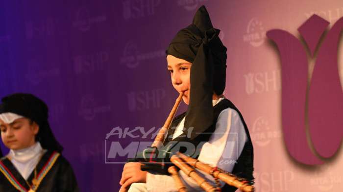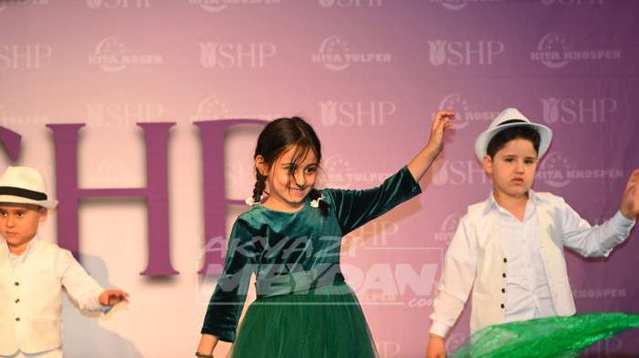 Törende müzik eşliğinde şarkılar söyleyip, gösteri yapan minik çocuklar, ayrıca
