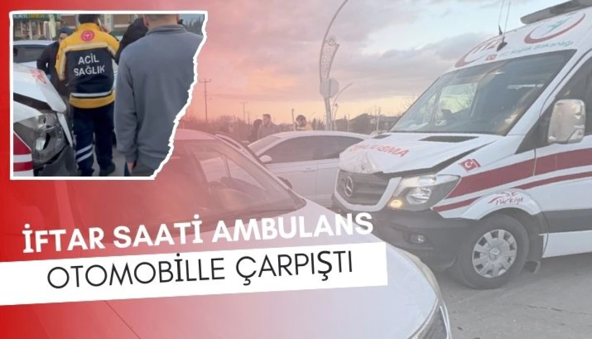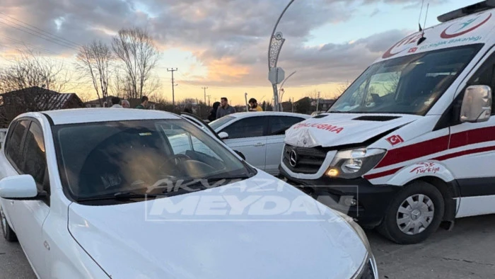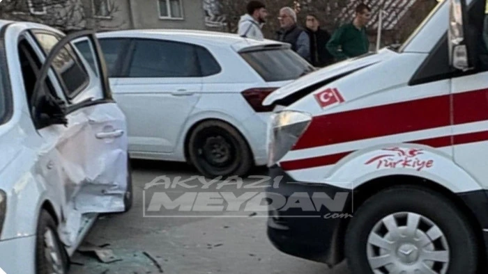 Akyazı'da iftara yakın dakikalarda hasta taşıyan ambulans ile otomobil çarpıştı.