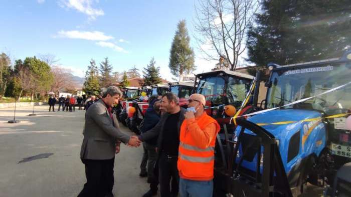 Yörükyeri mahallesi 7 adet, Dedeler mahallesi 1 adet, Salihiye Mahallesi 1 adet, Güzlek Mahallesi Kooperatifi 1 adet olmak üzere 10 adet traktör ve Merkez yeniköy Mahallesi 1 adet tomruk çekme vinci anahtar teslim töreni Vali Çetin Oktay Kaldırım ve protokol üyeleri tarafından hak sahiplerine anahtarları teslim edildi.