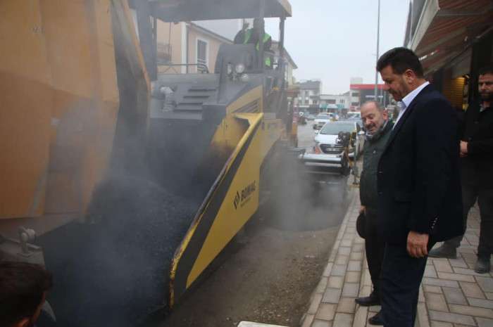 Akyazı Belediyesi Çarşı içi güzelleştirme çalışmaları kapsamında sıcak asfalt serimine başladı.