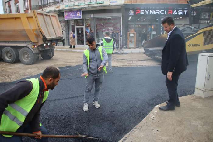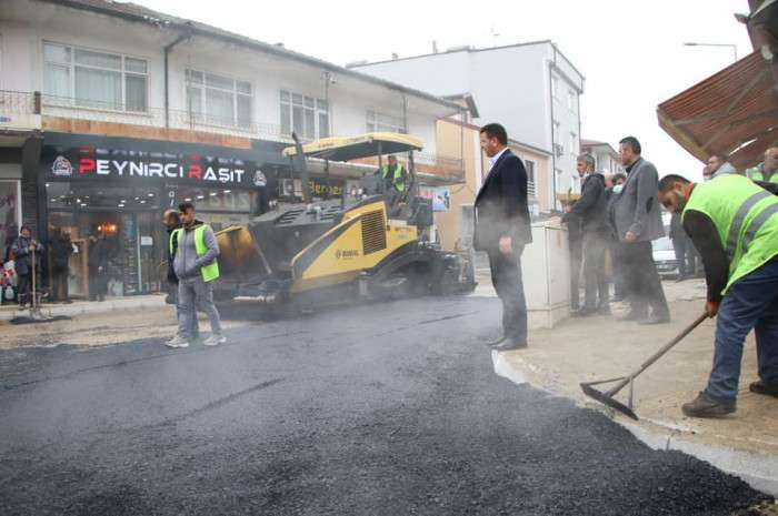 İLÇE MERKEZİNDE GÜZELLEŞTİRME ÇALIŞMALARINDA ASFALT SERİMİ BAŞLADI