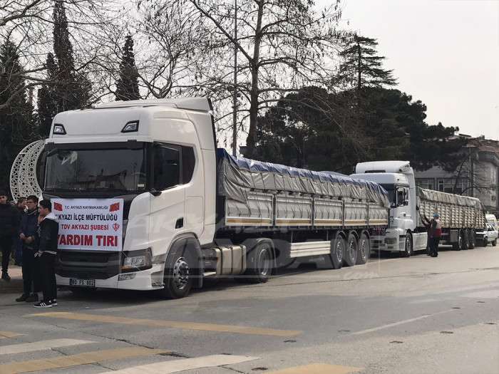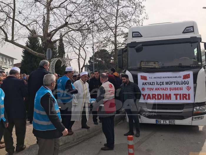 Akyazı müftülüğü Türk Diyanet vakfının organize ettiği yardım kampanyasında, Malatya ve Kahramanmaraş illerine kampanyada (su, gıda, giyim ve temizlik malzemeleri ) toplanan yardımlar bugün Gazi Süleyman paşa camii önünde Sakarya il müftü yardımcısı Mustafa Nurgül’ün dualarıyla 2 tır bugün deprem bölgeleri için uğurlandı.
