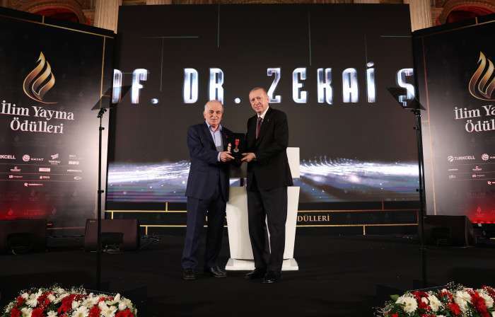 Törende, "Büyük Ödül"ün sahibi Prof. Dr. Zekai Şen, ödülünü Cumhurbaşkanı Erdoğan'ın elinden aldı.