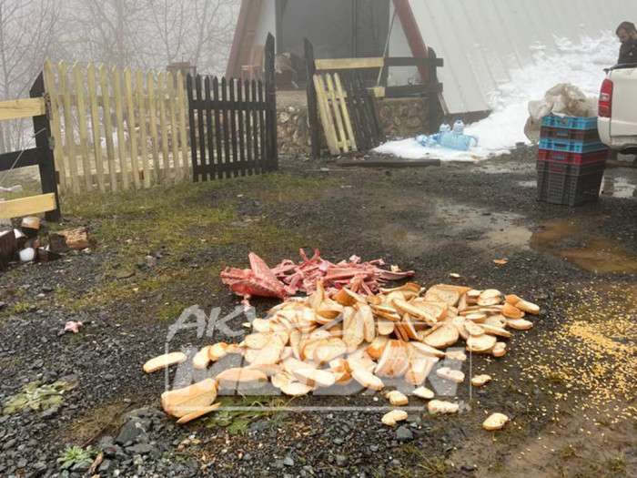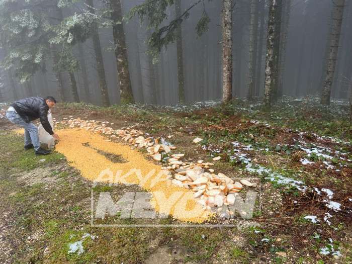 Peker yiyecek bulmakta zorluk çeken yabani hayvanlara beslenmeleri için dağda çeşitli bölgelere yem bıraktı.