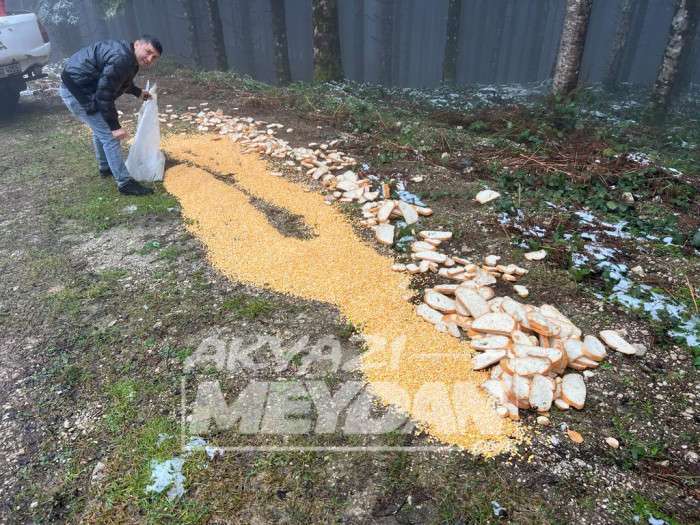 Akyazılı iş adamı Ömer Peker Zorlu kış şartlarından dolayı yüksek kesimlerde karla kaplanan dağlar nedeniyle burada yaşayan yaban hayvanlarını unutmadı.