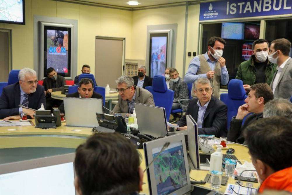 İSTANBUL (İGFA) - Soğuk ve yağışlı hava dün saat 17.00’dan itibaren tüm Marmara Bölgesi’yle birlikte İstanbul’da da etkisini gösterdi. İBB Genel Sekreteri Can Akın Çağlar AKOM’da ilgili İBB birimlerinin yöneticileriyle İstanbul’da alınan önlemleri gözden geçirdi. Ek önlemler alınması için değerlendirme toplantısı yapıldı. İstanbul trafiği anbean takip edildi.