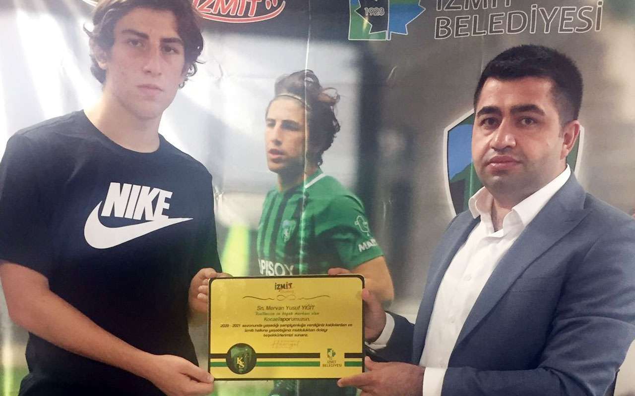 Tatil dönemini şehrimizde geçiren futbolcular Mesut Özdemir, Kemal Can Aydemir, Yiğithan Canguru, Batuhan Yayıkçı, Yiğit Ali Bayrak ve Mervan Yusuf Yiğit plaket ve bayraklarını İzmit Belediyesi personellerinden teslim aldı.