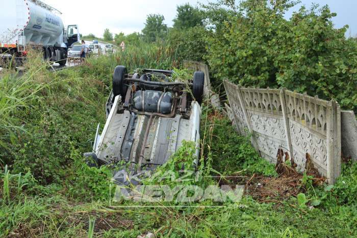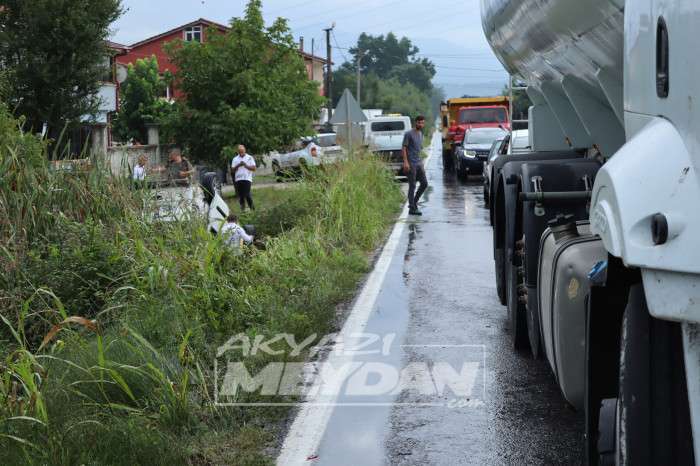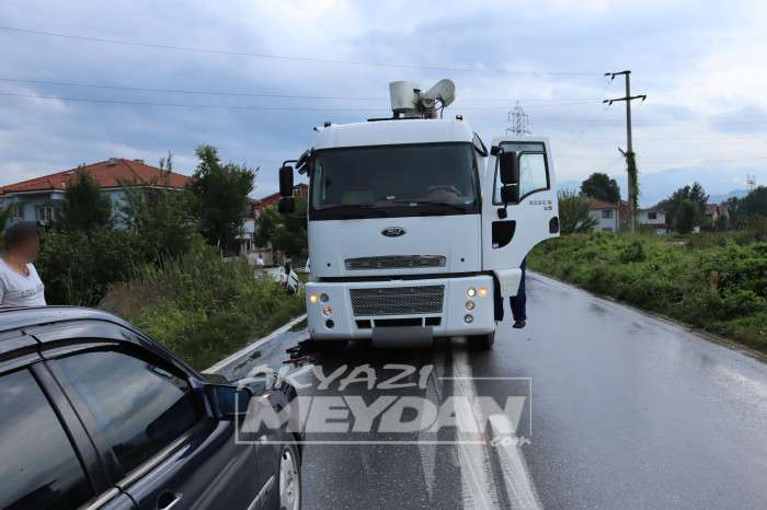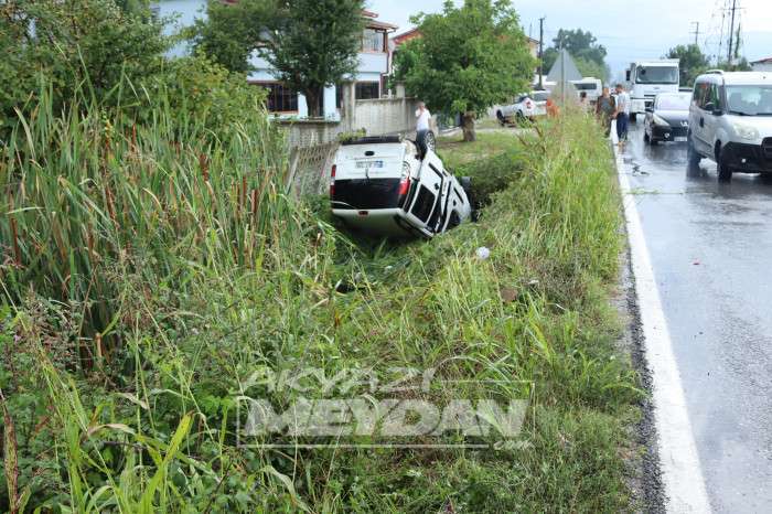 Sakarya’daki etkili olan yağış nedeni ile yoldaki su birikintisi kazaya neden oldu.