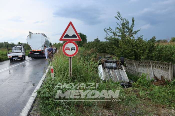Kaza, Karapürçek yolu kamışlı mevkiinde meydana geldi. Edinilen bilgilere göre M.Ö. yönetimindeki 54 AT *** plakalı hafif ticari araç iddiaya göre köprüden indiğinde yolda bulunan su birikintisinin aracını savurmasıyla kontrolden çıktı. Savrulan araç karşı yönden gelen E.N. idaresindeki 54 AAY *** plakalı kamyon’a çarparak su kanalına takla attı. Kazada yaralanan olmazken araçlarda maddi hasar meydana geldi. Kaza nedeni ile trafik kontrollü olarak tek yönlü sağlandı.