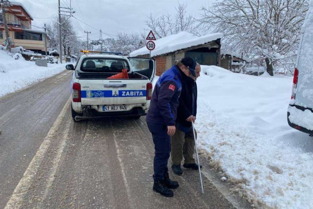İzmit Belediyesi Zabıta Müdürlüğü ekipleri evlerine gitmek isterken yoğun kar yağışı nedeniyle yolda kalan vatandaşların ve hastaneye gidemeyen hastaların yardımına koştu.