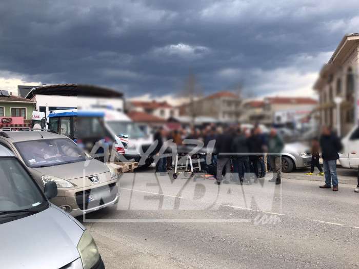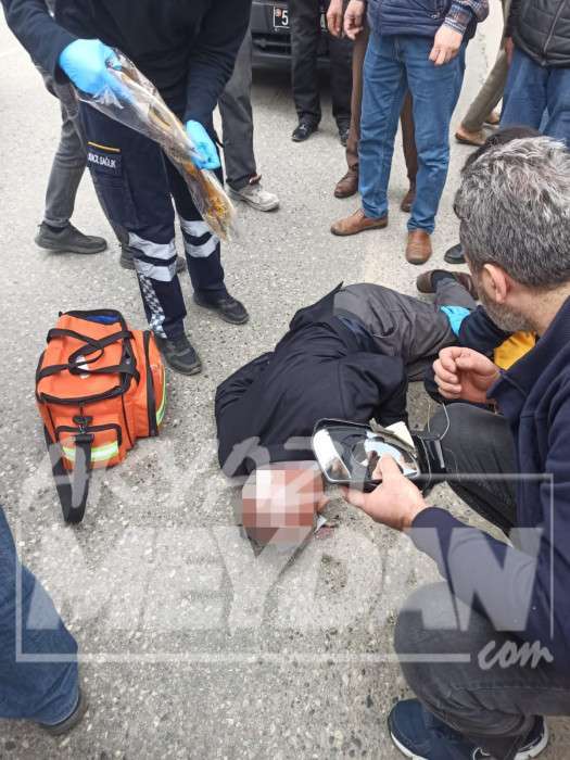 Akyazı’da karşıdan karşıya geçen yayalara otomobil çarptı. Yere düşen yaşlı adam başını yola çarparak yaralandı.