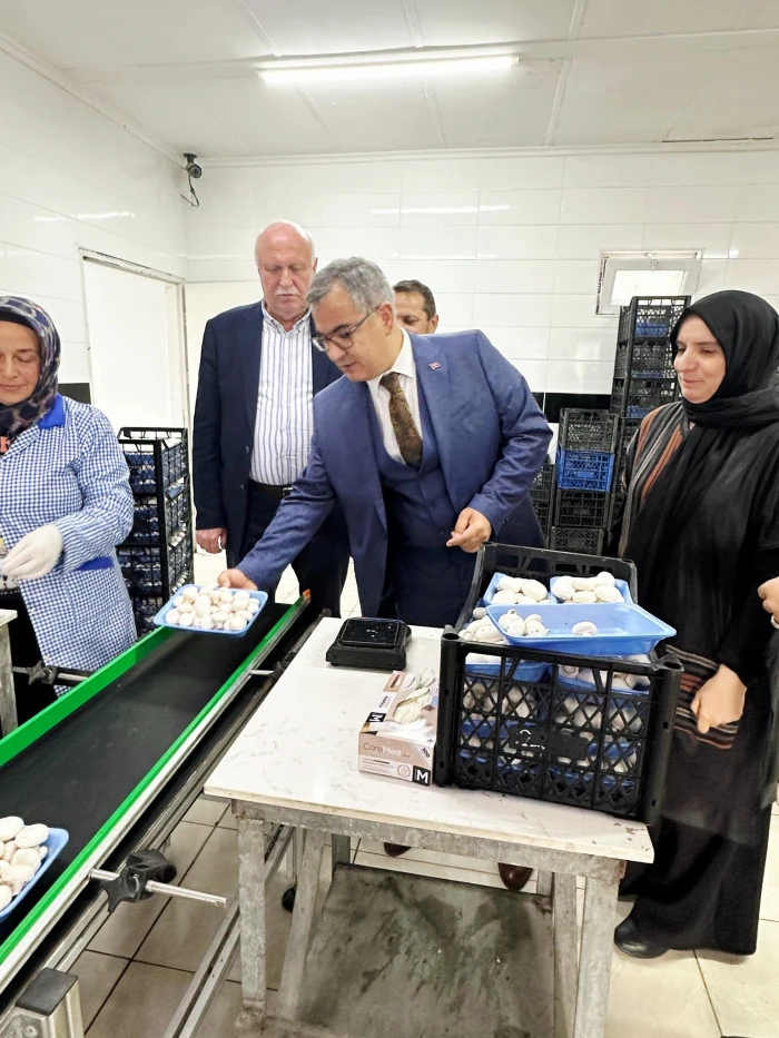 Ziyaret sırasında Kaymakam EŞKİ, Başkan Bayraktar ve İlçe Tarım Müdürü Meydan, tesis sahibi Sevim AY'dan mantar üretim süreçleri, pazar koşulları ve kadın çiftçilerin karşılaştığı zorluklar hakkında bilgi aldı. Üretimin her aşamasında kadın emeğinin ve titizliğinin ne denli belirleyici olduğu vurgulandı.