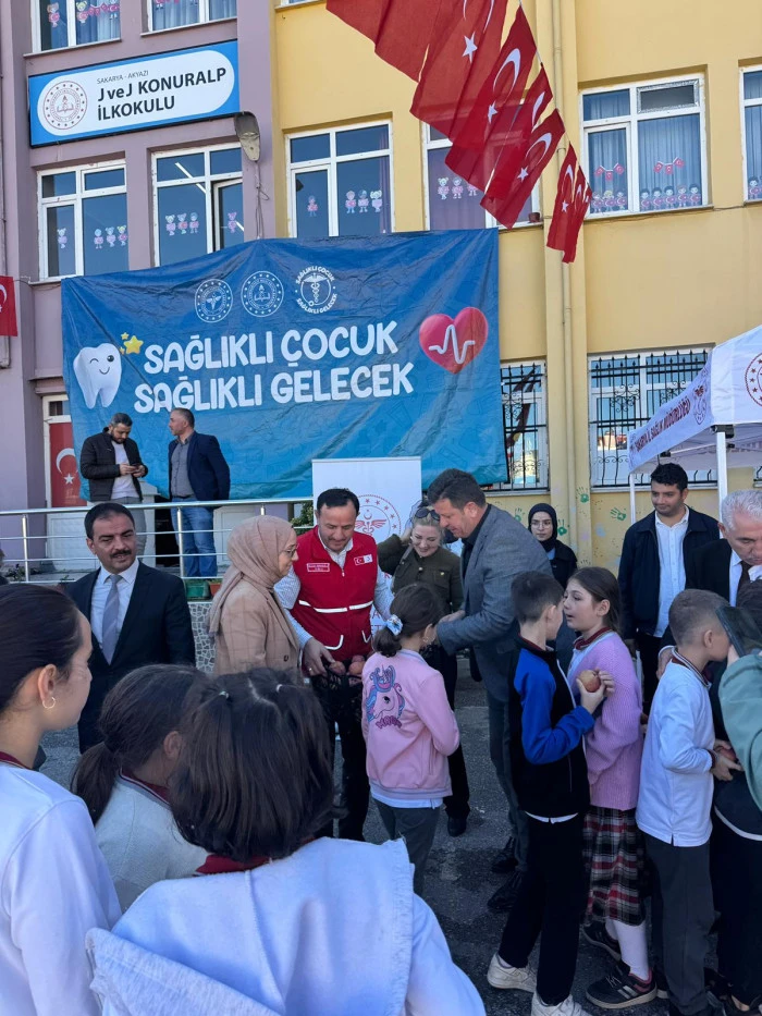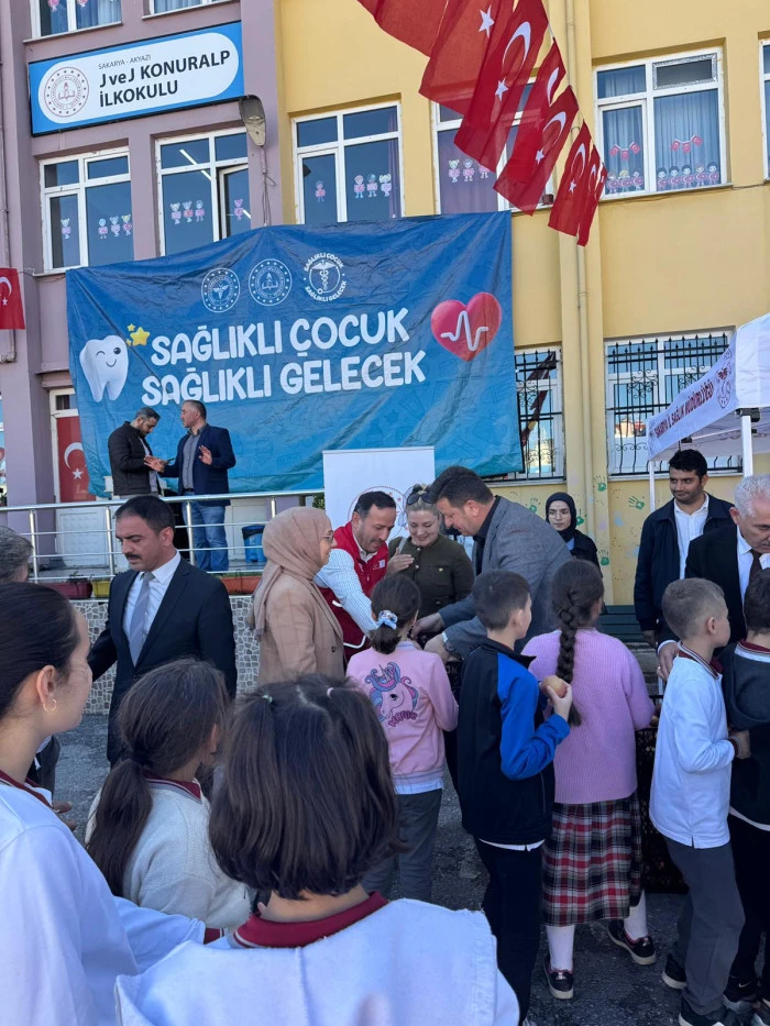 Kızılay Haftası'nda Akyazı protokolü J. ve J. Konuralp İlkokulu'nda buluştu. "Sağlıklı Çocuk Sağlıklı Gelecek" etkinliğinde bilinçli nesiller vurgulandı.