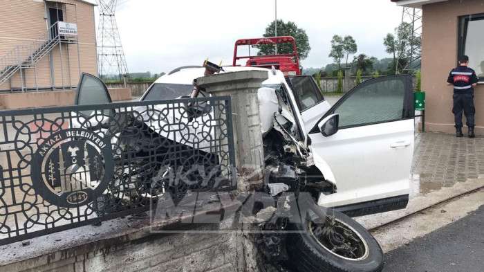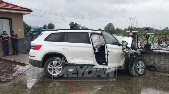 Akyazı'da kızını YKS'ye yetiştirmek isteyen babanın kullandığı cip su birikintisi nedeniyle kontrolden çıkarak mezbahanenin duvarına çarptı. Kazada baba öldü. Kızı yaralandı.