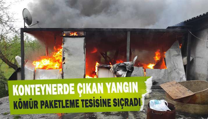Erenlerde konteyner da çıkan yangın kömür paketleme tesisine sıçradı. Yangın itfaiye erlerinin mücadelesi sonucunda söndürüldü.