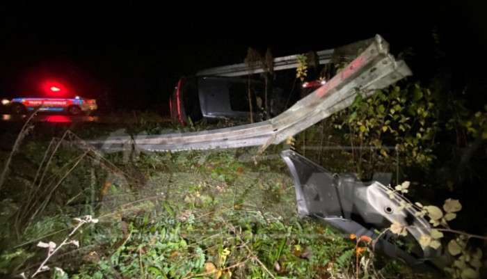 Sürücü yaralandı. Bariyerler ise çarpmanın etkisiyle kağıt gibi katlandı.