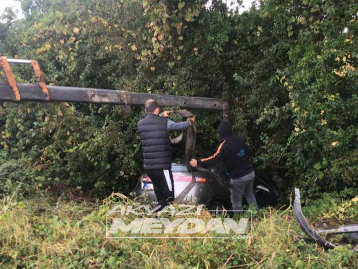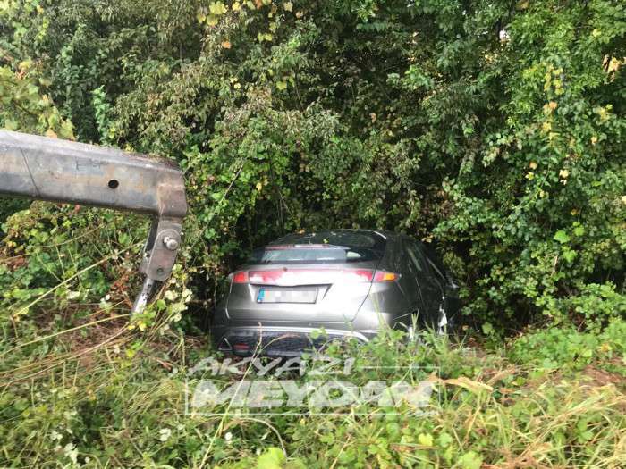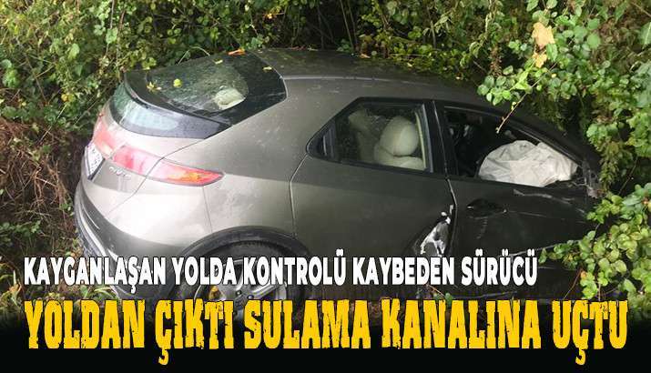 Dün gece saatlerinde meydana gelen kazada Edinilen bilgilere göre 26 yaşındaki O.Y. idaresindeki 64 NP *** plakalı otomobil D100 karayolu Adapazarı istikametinde seyrederken yağışlı havanın etkisiyle kayganlaşan yolda kontrolünü kaybedip yoldan çıktı. Sulama kanalına düşerek duran araçtan emniyet kemeri sayesinde yara almadan kurtuldu.