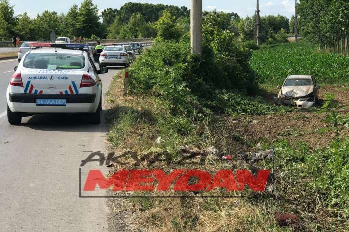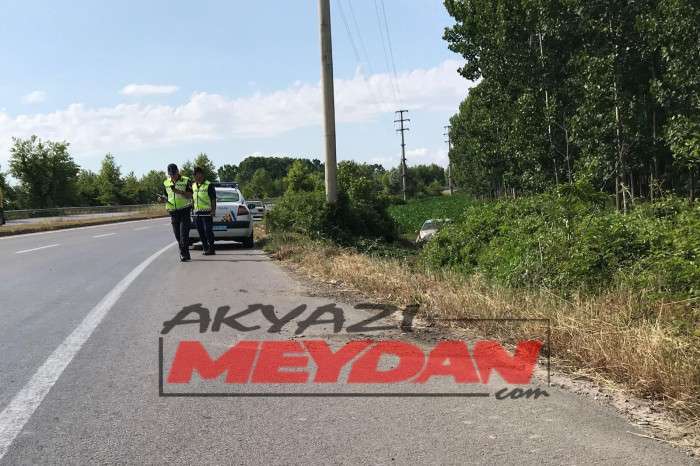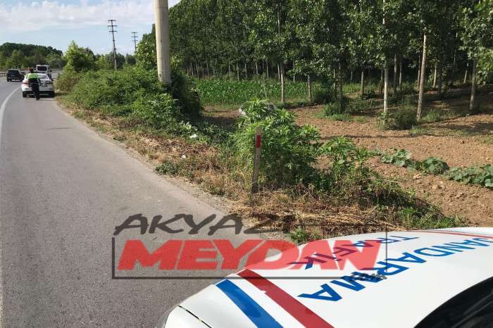 Akyazı’da yaşanan kazada D140 karayolu Adapazarı yönünde seyreden A.Ç. yönetimindeki 34 FV *** plakalı otomobil kontrolü kaybolunca yoldan çıkarak tarlaya uçtu.