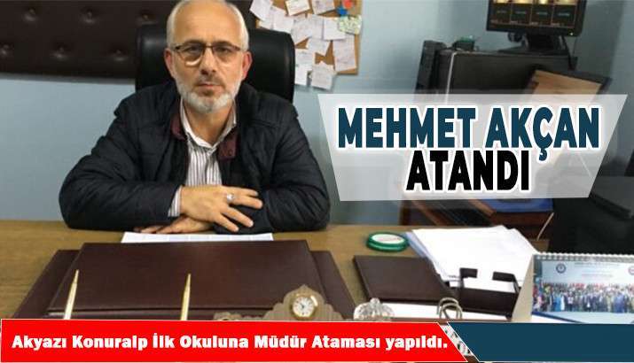 Akyazı Altındere Ali Altıparmak Orta Okulunda 6 Yıldır müdürlük yapan Mehmet Akcan Akyazı Konuralp İlk Okulunun yeni müdürü oldu.