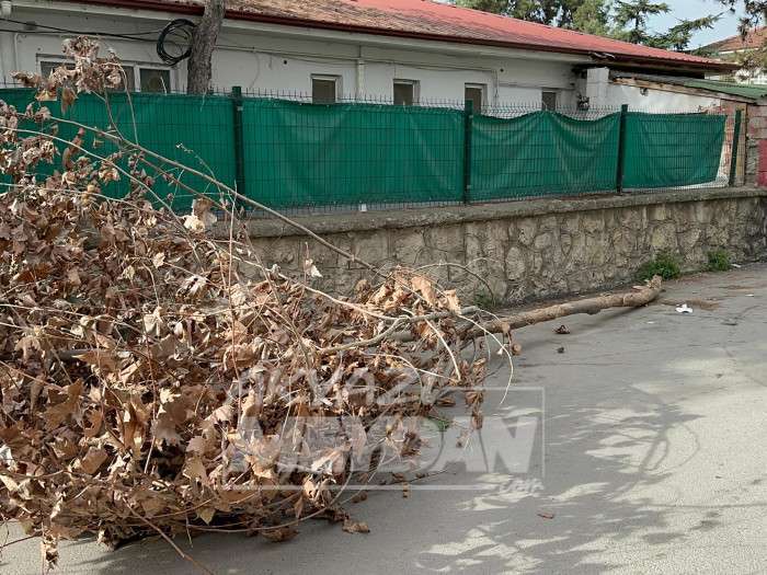 Akyazı'da çınar ağacının dalı rüzgâr nedeniyle kırılarak sokakta yürüyen yabancı uyruklu şahsın üzerine düştü.