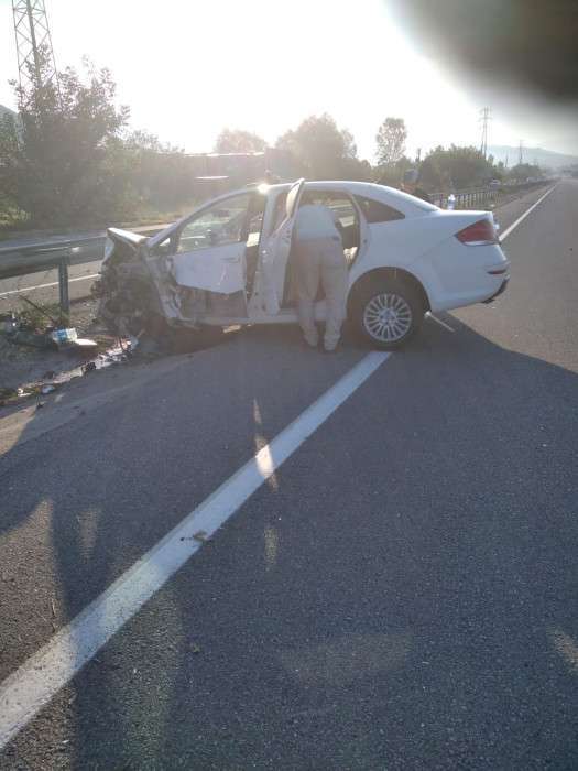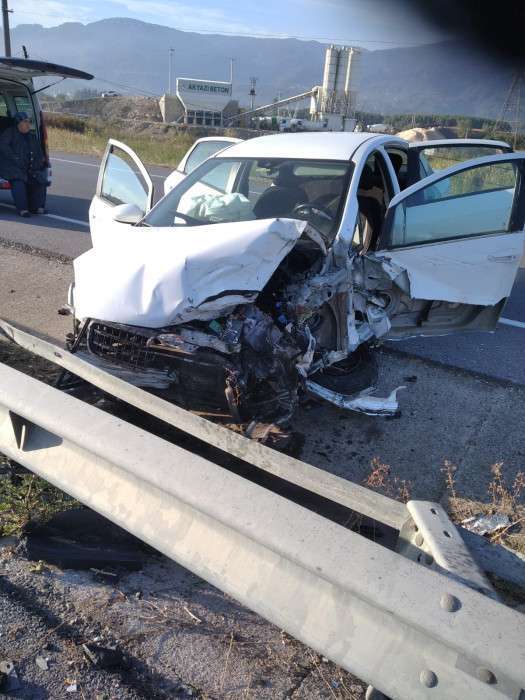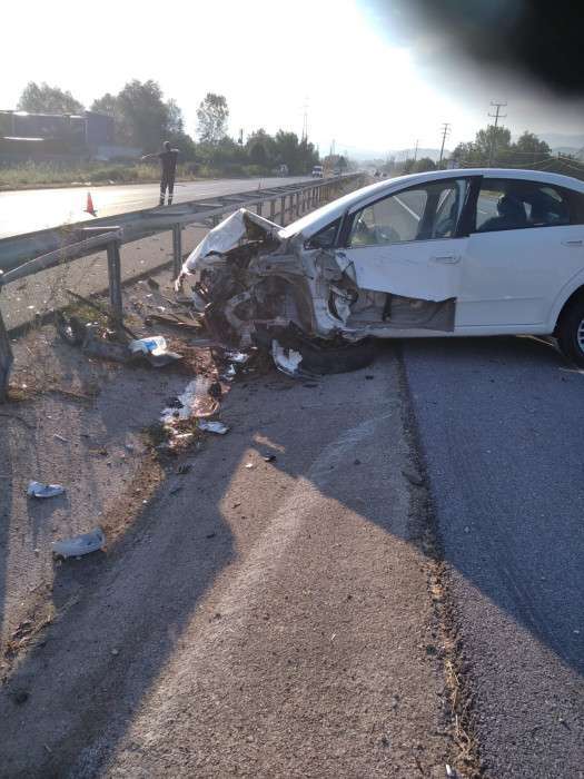 Kaza sabah saatlerinde D140 karayolu kuzuluk mevkinde meydana geldi. Edinilen bilgilere göre önüne aniden köpek çıkması üzerine direksiyonu kıran sürücü aracın kontrolünü kaybederek bariyerlere çarptı. Kazada yaralanan olmazken araçta maddi hasar meydana geldi.