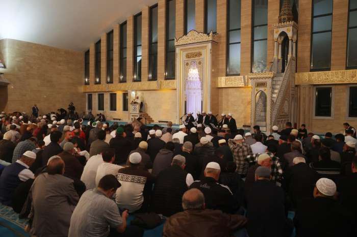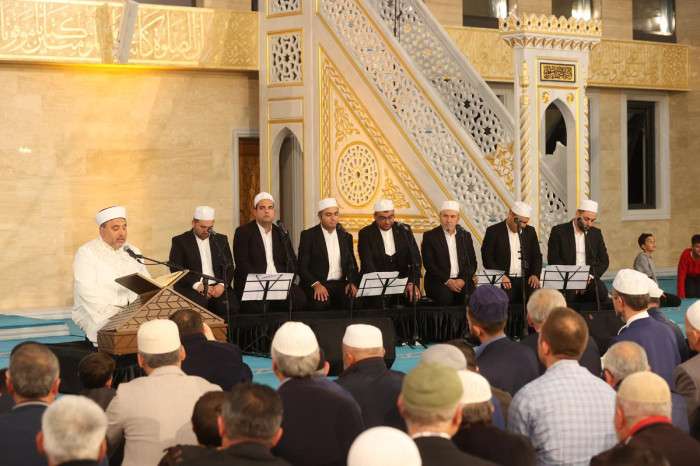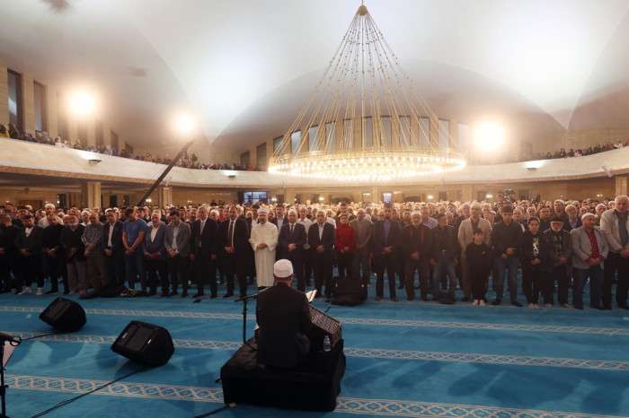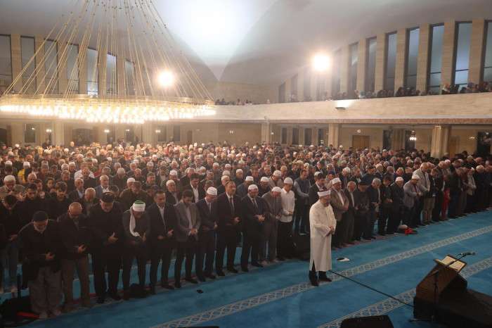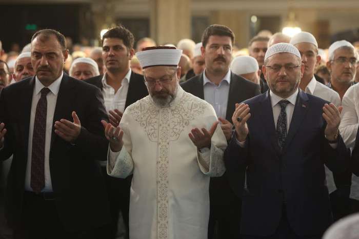 Başkan Erbaş, yatsı namazını kıldırdıktan sonra cemaatin kandilini tebrik etti.