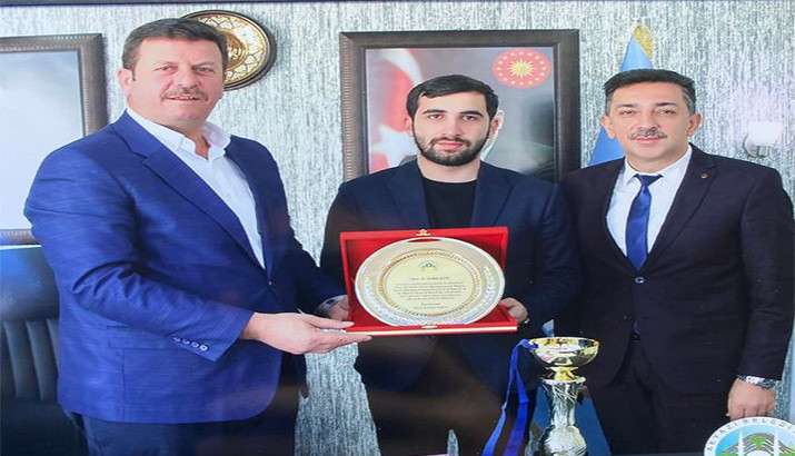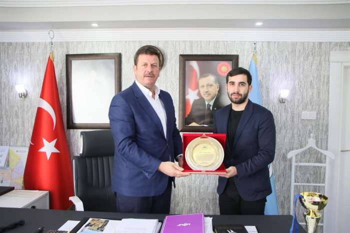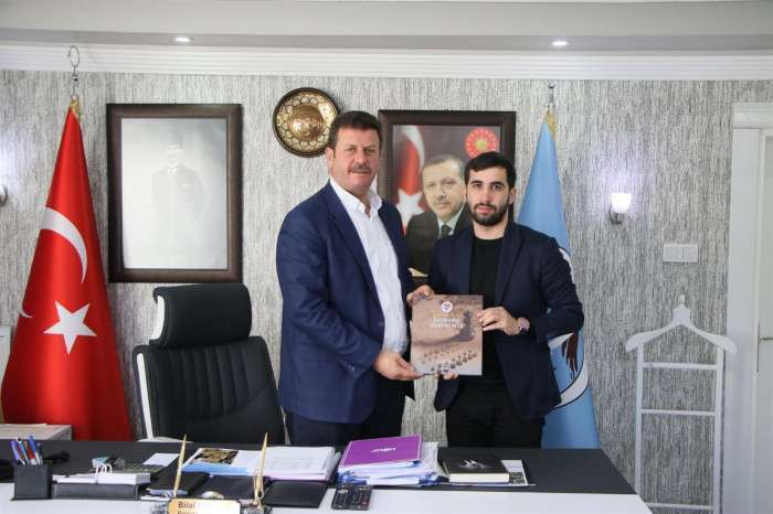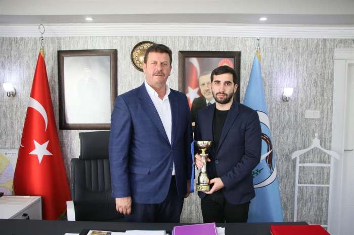 Akyazı Belediye Başkanı Bilal Soykan milli satranççı Berkay Çelik'i Makamında kabul etti.