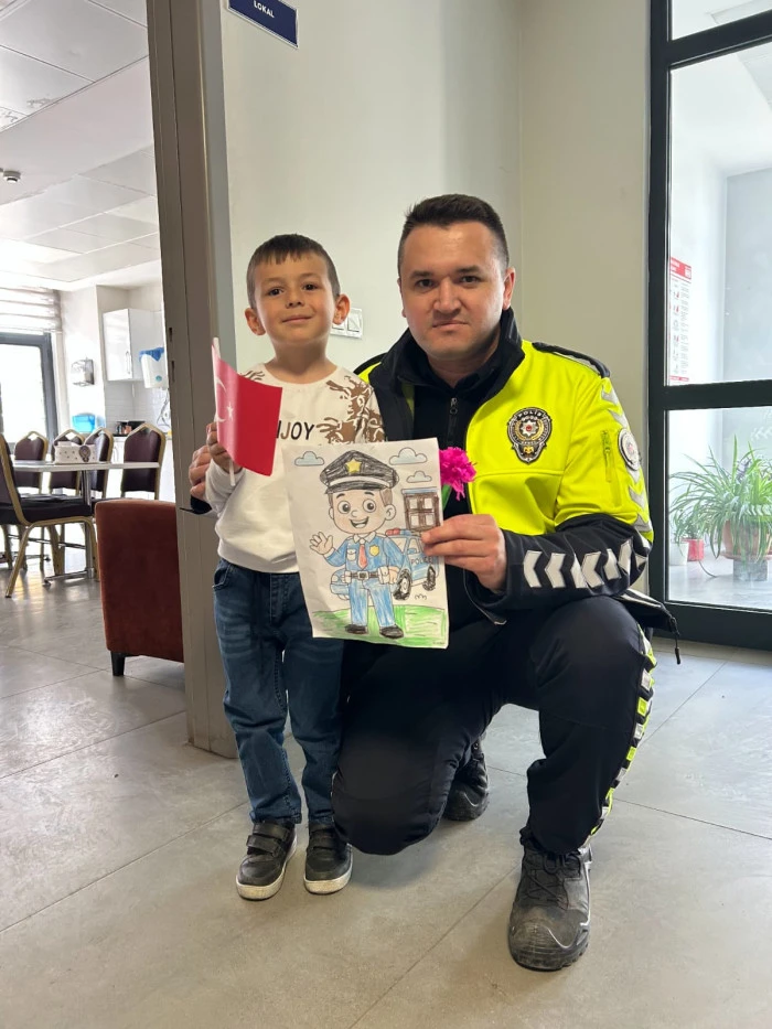 Emniyet mensupları, kendilerini ziyaret eden minik misafirleriyle yakından ilgilenerek çeşitli ikramlarda bulundu ve hatıra fotoğrafı çektirdi. Duygusal anların yaşandığı ziyaret, toplumsal farkındalık adına alkış toplarken, emniyet personeli bu nazik jestten dolayı Kuzuluk İlkokulu ailesine teşekkürlerini iletti.