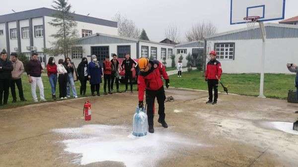Dr. Öğr. Üyesi Fatma Tanrıkulu öncülüğünde gerçekleşen uygulamada Yangından Korunma ve Söndürme konulu eğitimini Büyükşehir itfaiyesi eğitim birimi verildi. İtfaiye ve afadın katıldığı eğitimde afet durumlarında ne yapılacağı konusunda öğrenciler bilgilendirildi. Öğr. Üyesi Tanrıkulu, eğitimde emeği geçen herkese teşekkür ederiz. Dedi.