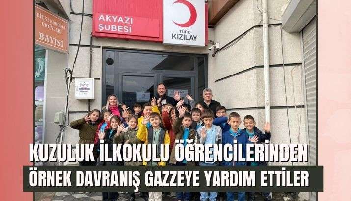 Kuzuluk İlkokulu 4-B sınıfı öğrencileri kendi sınıflarında biriktirdiği binlirayı okul müdürü Uğur Arslan ve sınıf öğretmeni Elvan Aksoy ile birlikte Kızılay Akyazı Şubesini ziyaret ederek GAZZE için bağışta bulundular.