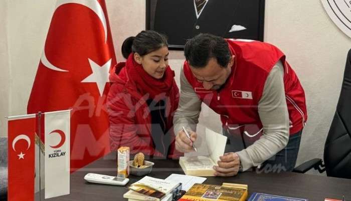 Öğrencilere ikramda bulunan Birincioğlu bir öğrencimizin de doğum günü nedeniyle dil başarısı için Kızılay arşivinden kitap hediye etti.