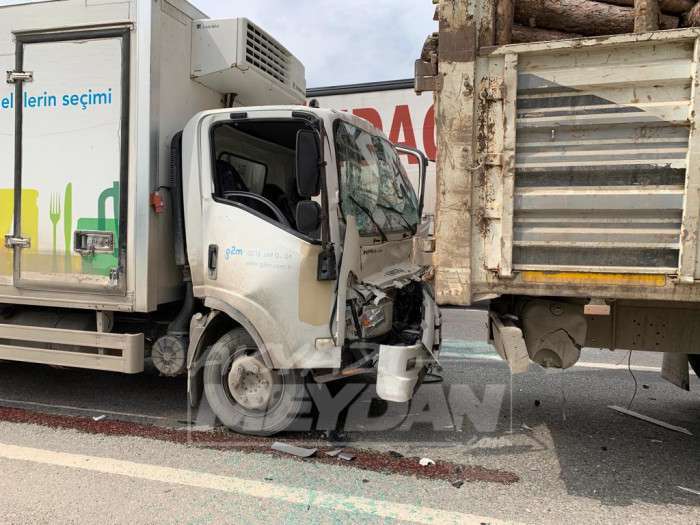 D-100 karayolunda tomruk yüklü kamyona arkadan çarpan kamyon sürücüsü araçta sıkıştı. Yaralı sürücü güçlükle kurtarılarak hastaneye kaldırıldı.