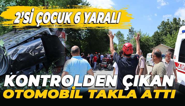 OTOMOBİL TAKLA ATTI 6 KİŞİ YARALANDI