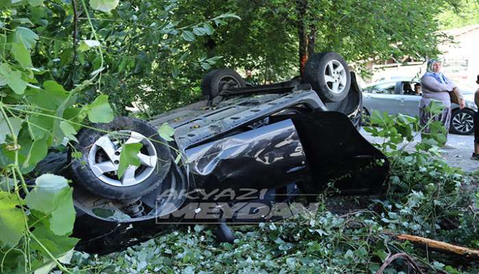 Edinilen bilgilere göre Altındere’den Akyazı istikametine seyreden İ.K. Yönetimindeki 54 BL *** plakalı Jeep direksiyon hakimiyetini kaybetmesi sonucu karşı şeride geçti kaldırıma çarpan araç takla atarak bahçeye yuvarlandı.