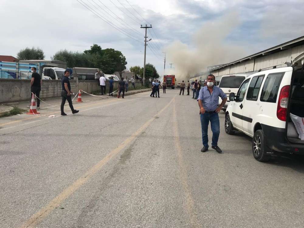 Akyazı kapalı pazar yerinde araç yangını korkuttu.