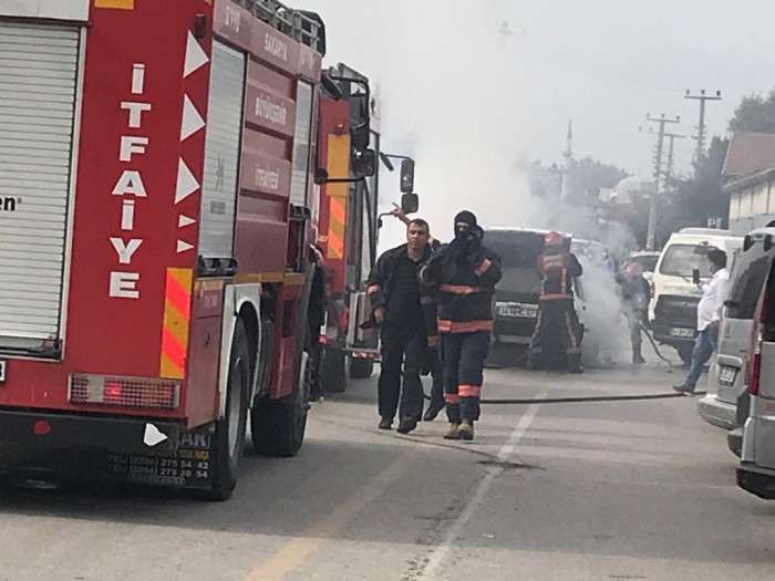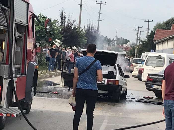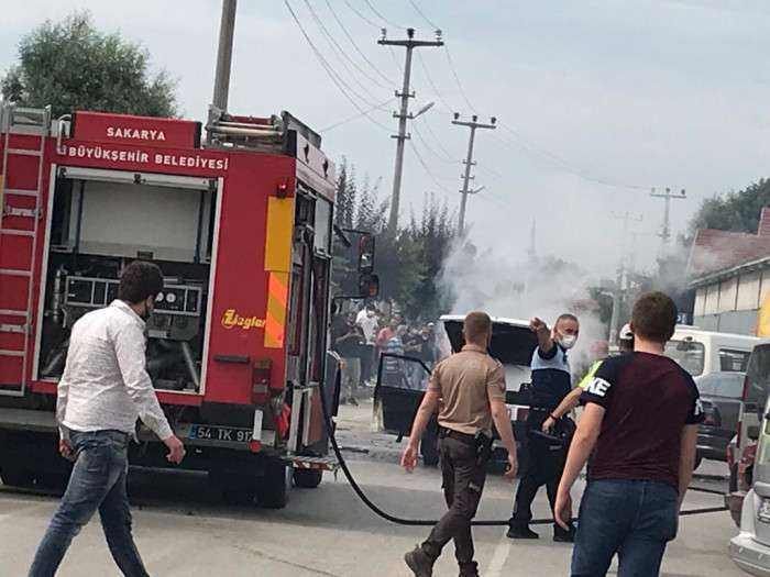 Akyazı kapalı pazar yerinde seyir halindeki lada marka otomobilde bilinmeyen bir sebeple yangın çıktı. Pazaryeri çarşamba günü olması nedeniyle kalabalık olması ve aracın lpg'li olması korkuttu. Panik halindeki vatandaşların ihbarı üzerine olay yerine itfaiye ekipleri sevk edildi.