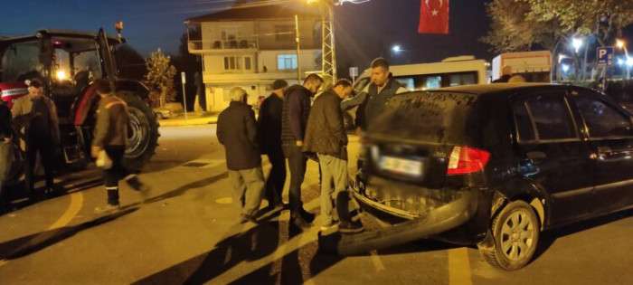 Edinilen bilgilere göre ilçemiz Hasanbey mahallesinden Alaağaç istikametine seyreden traktör ile Akyazı’dan Yeniköy istikametine giden otomobil Pazarköy dört yol kavşağında çarpıştı. Kazada yaralanan olmazken otomobilde maddi hasar meydana geldi.