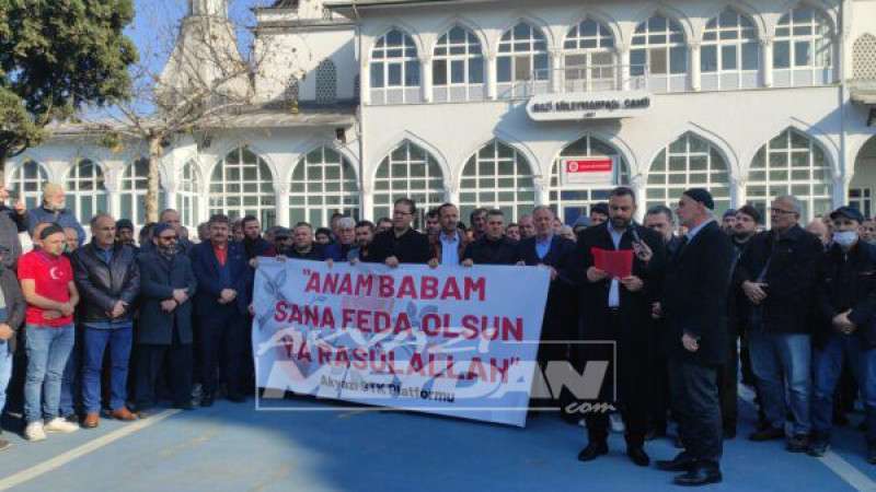 Akyazı'da Sivil Toplum Kuruluşları Platformu müfredat dışına çıkarak Peygamber Efendimiz Hz. Muhammed'e (SAV) hakaret eden Yıldız Teknik Üniversitesi Sanat ve Tasarım Fakültesi Öğretim Görevlisi Uğur Kutay'a tepki göstermek için Gazi Süleymanpaşa Camii'nde Cuma namazı çıkışı açıklama yaptı.