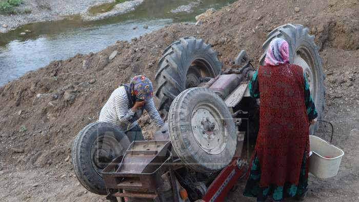 Puna Mahallesinde traktör devrildi kazada baba Yaşamını yitirirken oğlu yaralandı.