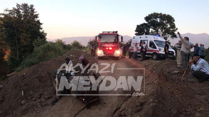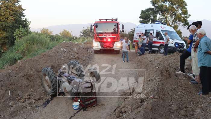 Frene basan baba Abdurrahim K. su bidonunun sıkıştığını fark etti. Bidonu almak isterken kontrolden çıkan traktör kenardaki toprak yığına çarparak devrildi. Kazada traktörün devrileceğini anlayan İbrahim K. traktörden atlayarak kazadan yara almadan kurtulurken Baba Abdurrahim K. ve Berat K. yaralandı. Baba Abdurrahim K.’nın ağır yaralandı.