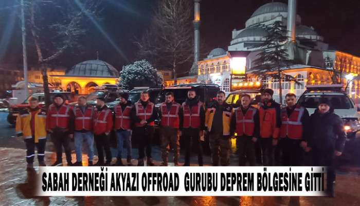 Akyazı Off Road gurubu ve SABAH derneğinden toplam 15 kişilik ekip 6 araçla birlikte deprem bölgesine ulaşacak orada arama çalışmalarına katılacaklar.