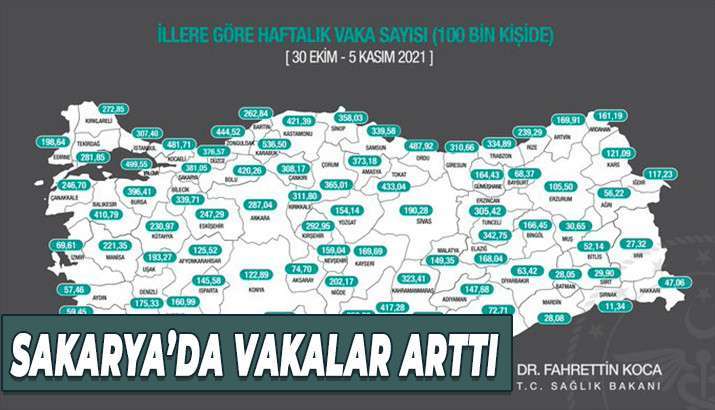 Sağlık bakanı Fahrettin Koca, 30 Ekim 5 Kasım illere göre haftalık veriyi paylaştı. Haritada geçen haftaya göre Şehrimizde vakalar yükselişte.