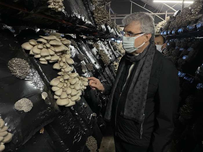 Sakarya Büyükşehir Belediye Başkanı Ekrem Yüce, Akyazı ilçesinde faaliyet gösteren 10K firmasını ziyaret ederek istiridye mantarı üretimi hakkında bilgiler aldı.