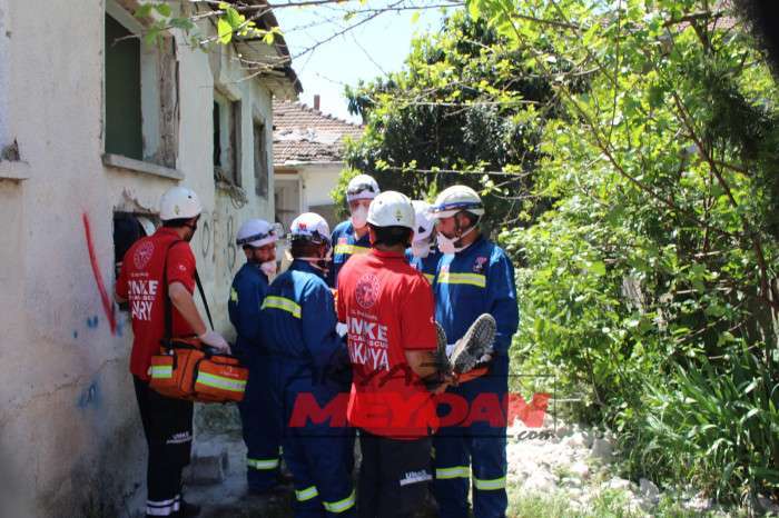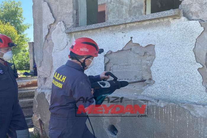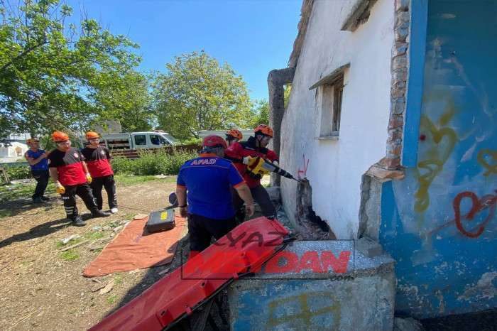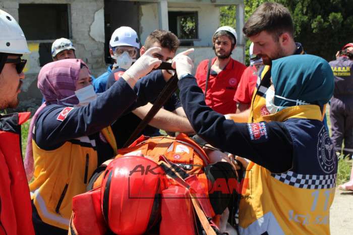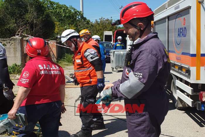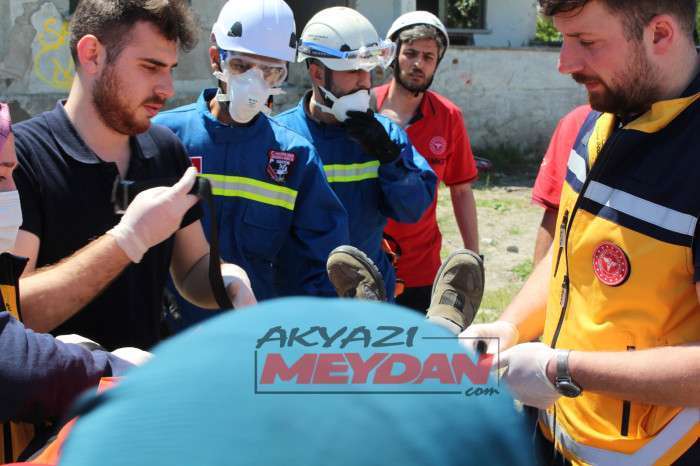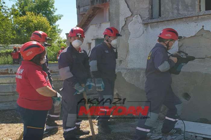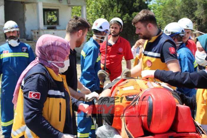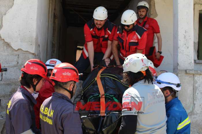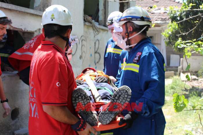 Tatbikata SAKTİM, 8 personel 2 araç ve kurtarma malzemeleri ile olay yerine intikalde bulunarak tatbikat gereği betonarme binadan delikler açarak 1 yaralıya ulaştı.