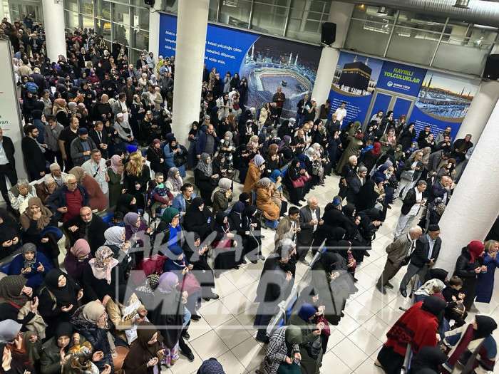 Umre kafilesi, 10 hoca ile tören sonunda dualarla saat 03.30’da Cengiz Topel Havaalanı’na yolcu edildi.